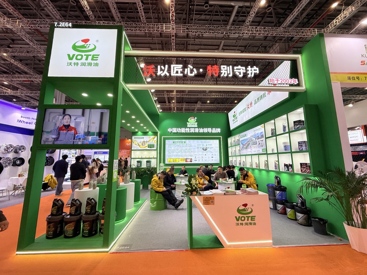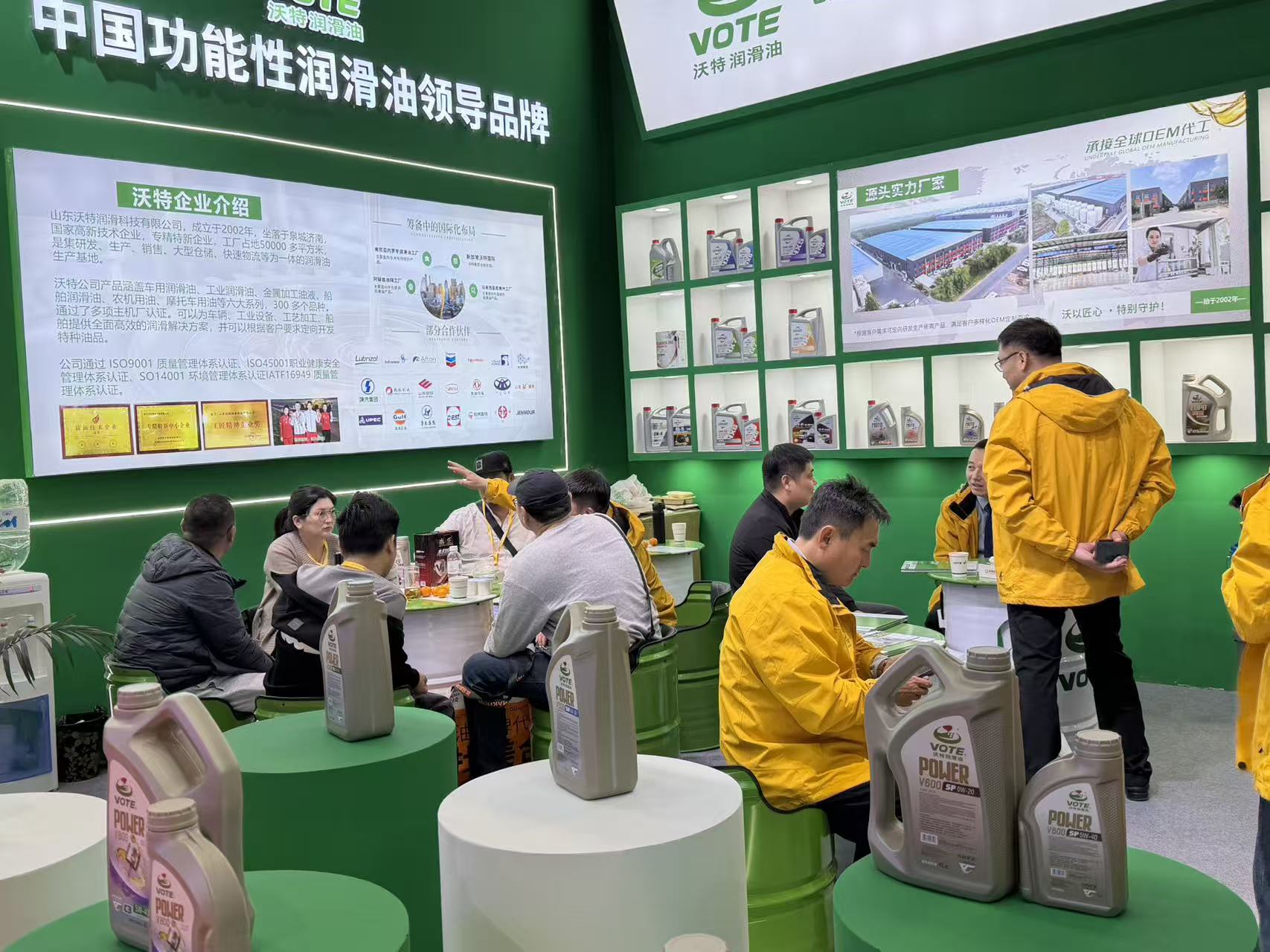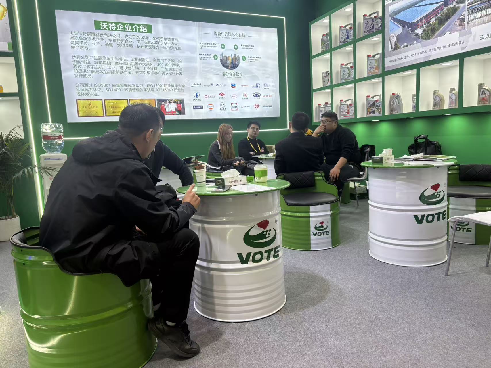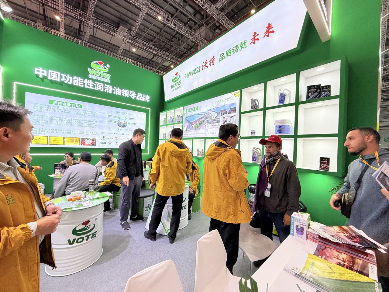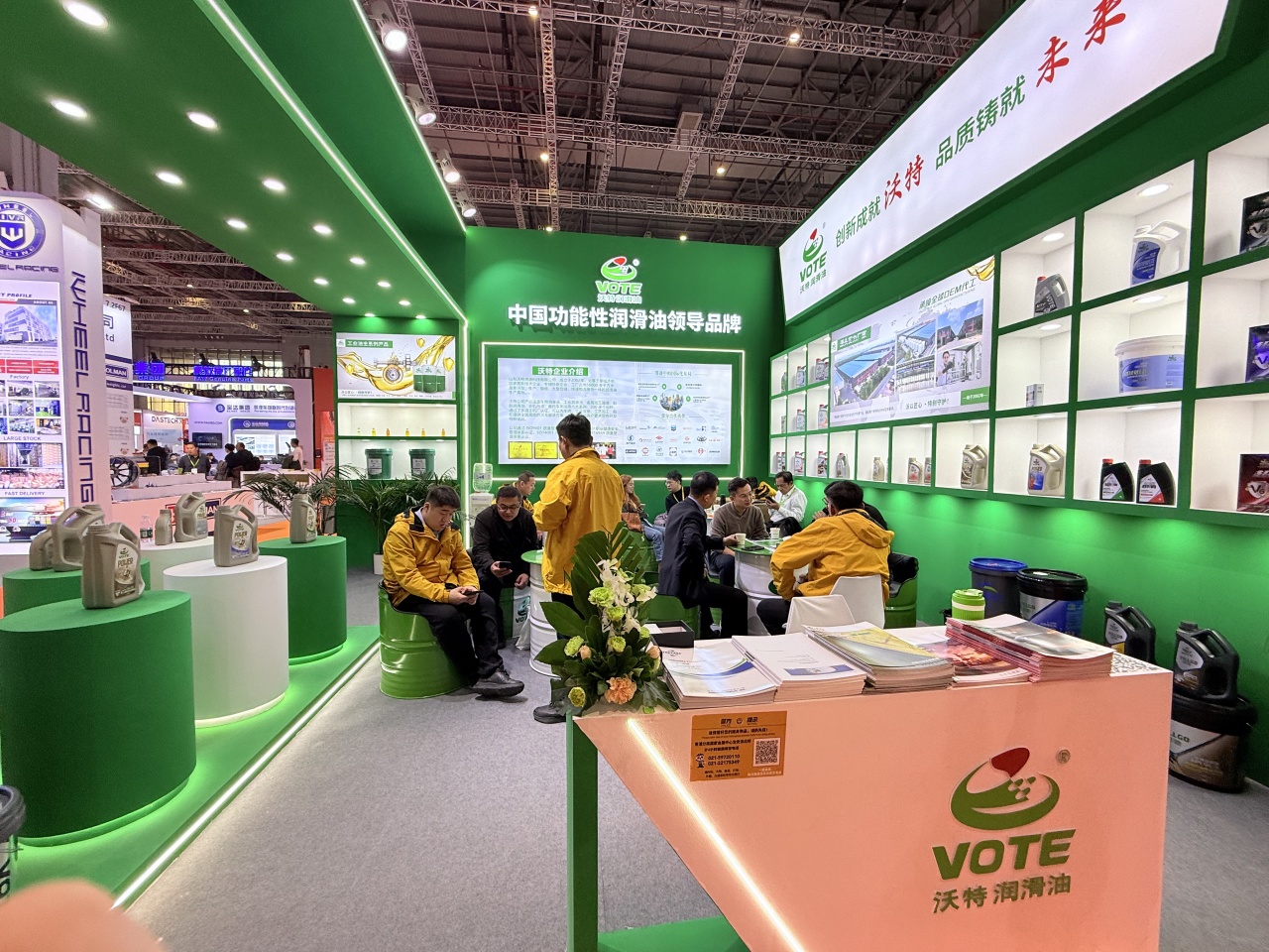 展会现场,沃特润滑油的展位始终是人气焦点。简约大气的展台设计搭配清晰的产品分区,吸引了众多客户驻足咨询、洽谈合作!